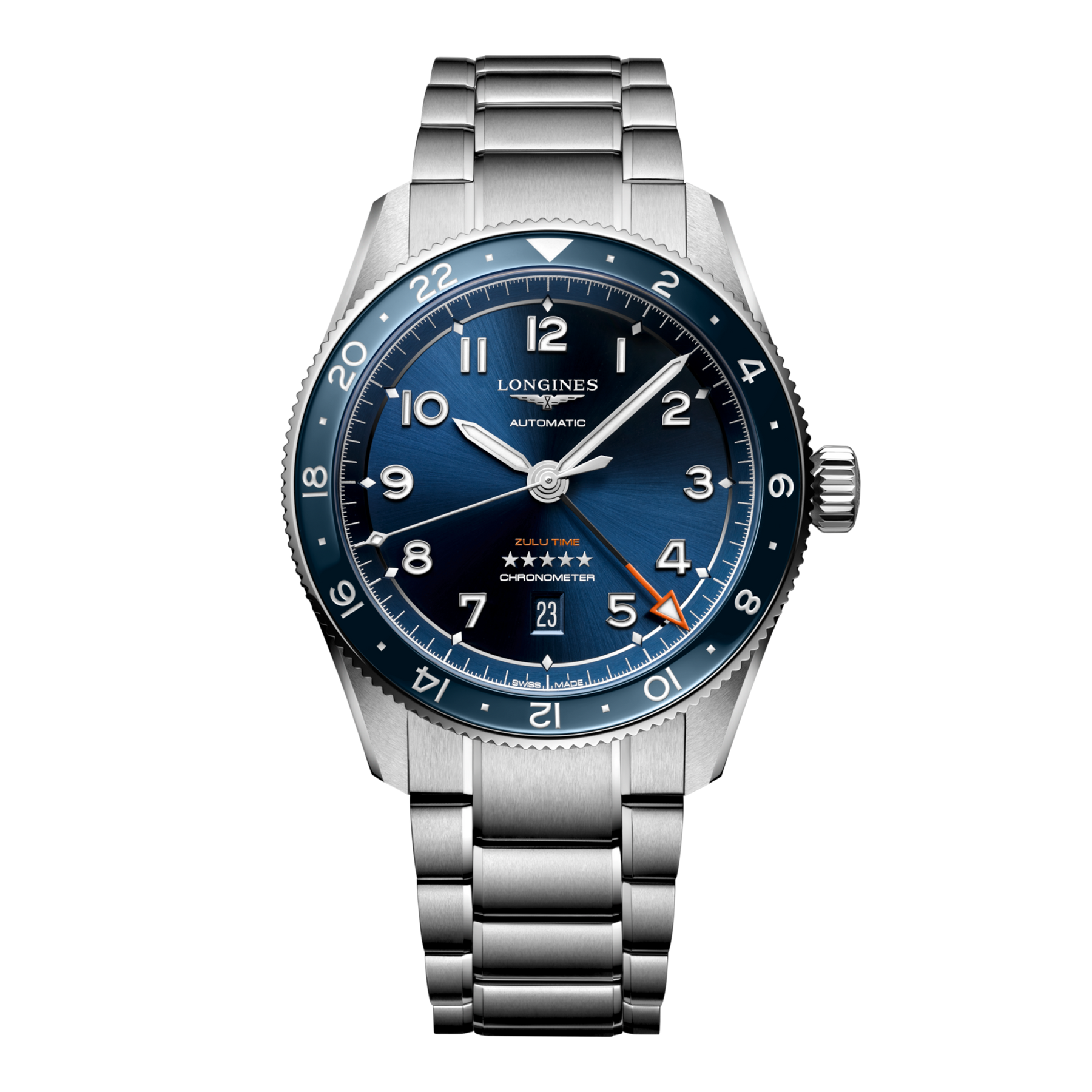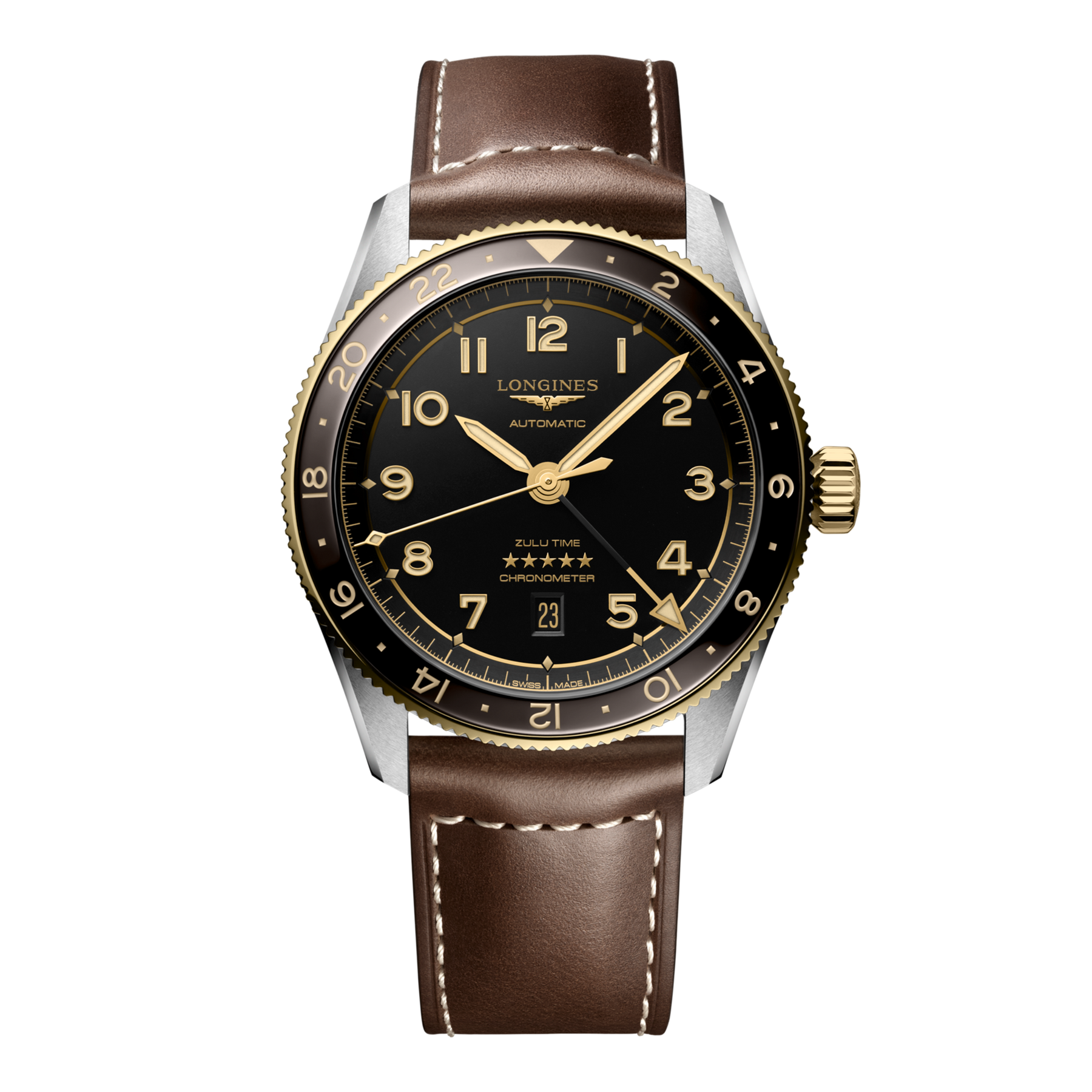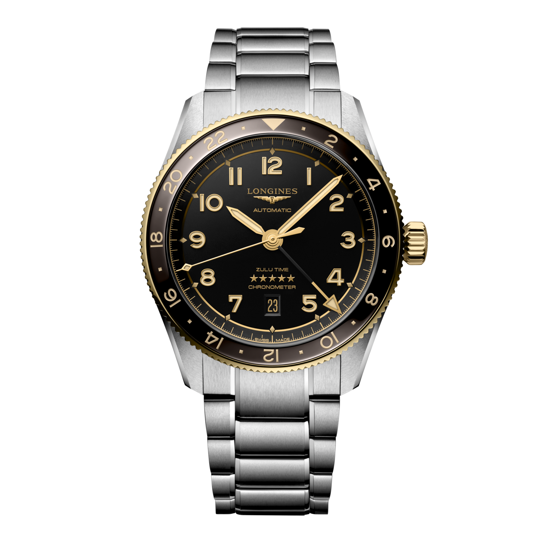 LONGINES SPIRIT ZULU TIME, L3.812.5.53.6, Automatic watch, Ø 42.00 mm, Stainless steel and 18 karat yellow gold cap 200.